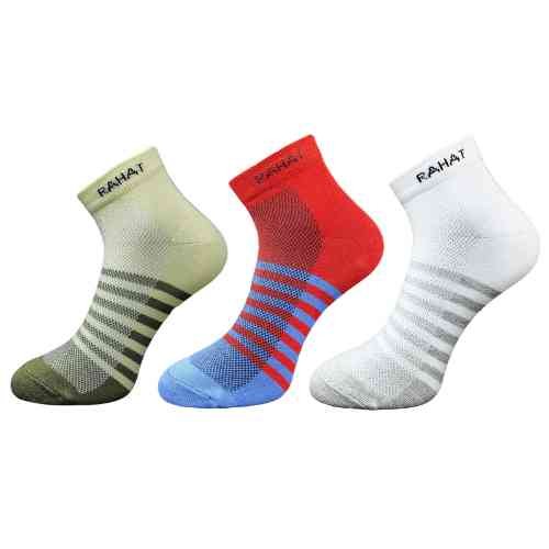 Rahat Socks 3 Pairs Ankle Socks for Men, Ultimate Comfort with Stylish Cushion for Everyday Use – Free Size, Pack of 3, Multicolour.