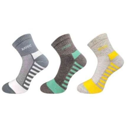 Rahat Socks 3 Pairs Crew Socks for Men, Ultimate Comfort with Stylish Cushion for Everyday Use – Free Size, Pack of 3, Multicolour.