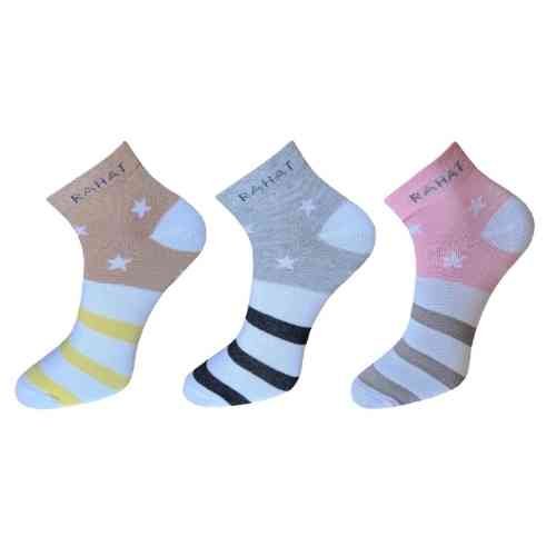 Rahat Socks 3 Pairs Ankle Socks for Women, Ultimate Comfort with Stylish Cushion for Everyday Use – Free Size, Pack of 3, Multicolour.