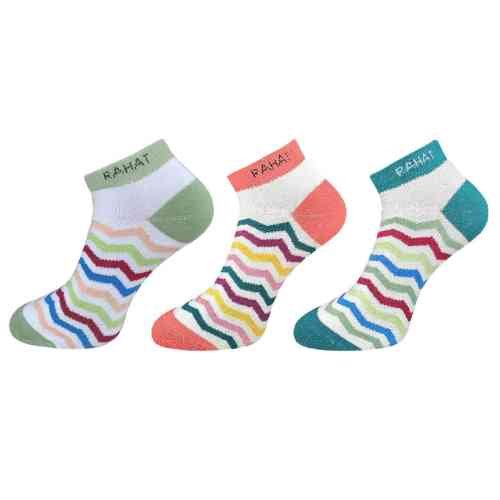 Rahat Socks 3 Pairs Ankle Socks for Women, Ultimate Comfort with Stylish Cushion for Everyday Use – Free Size, Pack of 3, Multicolour.
