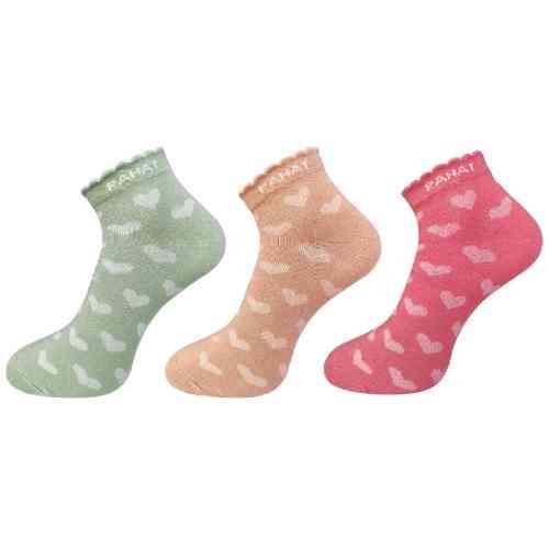 Rahat Socks 3 Pairs Ankle Socks for Women, Ultimate Comfort with Stylish Cushion for Everyday Use – Free Size, Pack of 3, Multicolour.